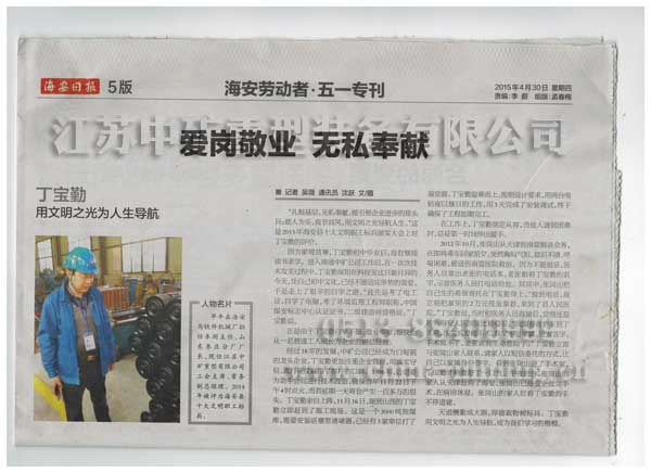 2015年2月,在海安縣十大文明職工標(biāo)兵的頒獎(jiǎng)大會(huì)上,江蘇中礦公司副總丁寶勤走上了領(lǐng)獎(jiǎng)臺(tái)。主持人宣讀了頒獎(jiǎng)詞:扎根基層,無私奉獻(xiàn),做引領(lǐng)企業(yè)進(jìn)步的排頭兵;助人為樂,亮節(jié)高風(fēng),用文明之光導(dǎo)航人生。人生的旅途因?yàn)橛心愣剩赖碌呢S碑因你而閃光。