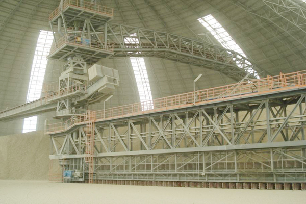 該堆取料機的作業場所在封閉的球形料棚(或稱球形料倉)內,可解決物料在堆、取料過程中受風、雨等氣候影響發生的流失、飛散等問題。圓形堆取料機能夠無故障并具有較長時間的使用壽命,在很大程度上取決于經常的檢查及良好的使用和維護保養。